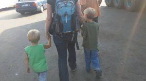 So back outside the boarder crossing office we officially introduce ourselves to one another, which for the boys meant repeatedly giving Alex and I hugs around the legs. Before departing down the road to the South African side the father tells the boys they need to hold hands. Immediately both of my hands are grabbed and interlocked with a small dusty hand of each boy. An unusual train is formed as the father proceeds forward with the oldest boy behind him, myself in the middle, and the youngest boy making up the end. Walking down the road was not easy on my arms as the oldest tried to keep up with his father pulling me forward as the curious youngest is moving significantly slower and several paces behind me. The whole time I was afraid that the oldest would pull me hard enough that little one would get pulled as a reaction and fall. Safely to the other side my arms only got several moments of rest as the littlest one began to use them as a spring to jump higher. We once again were waiting in line and the boys were getting bored so Alex and I became the entertainment. The father told us we didn’t have to play along, but I didn’t mind they were both so sweat and energetic it was hard not to get swept up into their charm.
