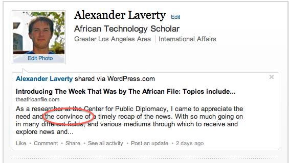 I recently discussed ICT in Africa with practioners in the field during a recent morning, and had a realization shortly after about why I have a passion for Africa and for ICT. Because it can be hard to talk about my interest in the continent, I usually brush the question off on ‘Why Africa?’.