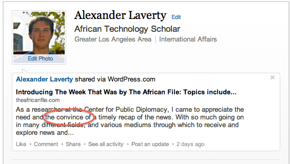 I’ve realized since the beginning of my interest, that for a young white male American to have an fixation on the continent is a fact many people find perplexing. African Studies on a whole is a threatened discipline in the United States, and I certainly don’t give off the vibe that I believe most people expect an Africanist to exude.